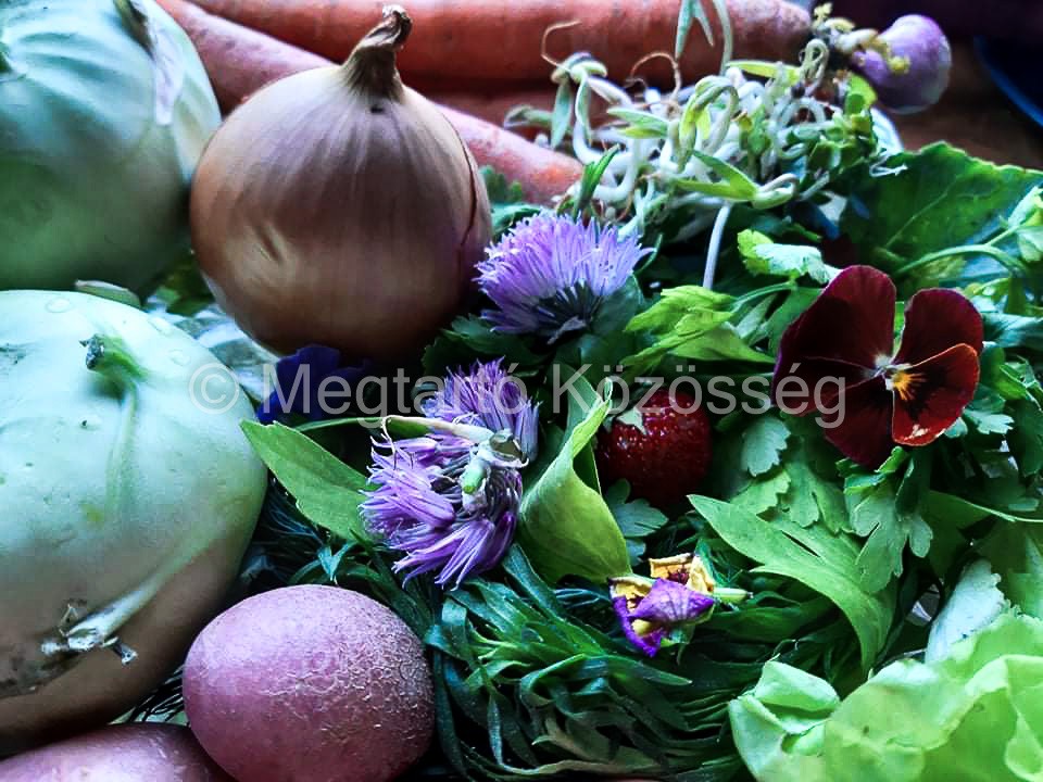 egy- egy szezonális, edzett, itteni földben termett zöldség.